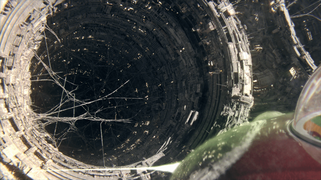 The large looming Mothership was a design I thought about for a long time. A lot of inspiration comes from NASA’s International Space Station. It’s made as if the tubular structure base was built first, and over the years has been retrofitted and iterated on. The wires and structures were inspired by ISS photos combined with classic Sci Fi book covers and modern Sci Fi art. and it contains a spinning artificial gravity core to house intelligent organisms that lived natively on gravitational planets.